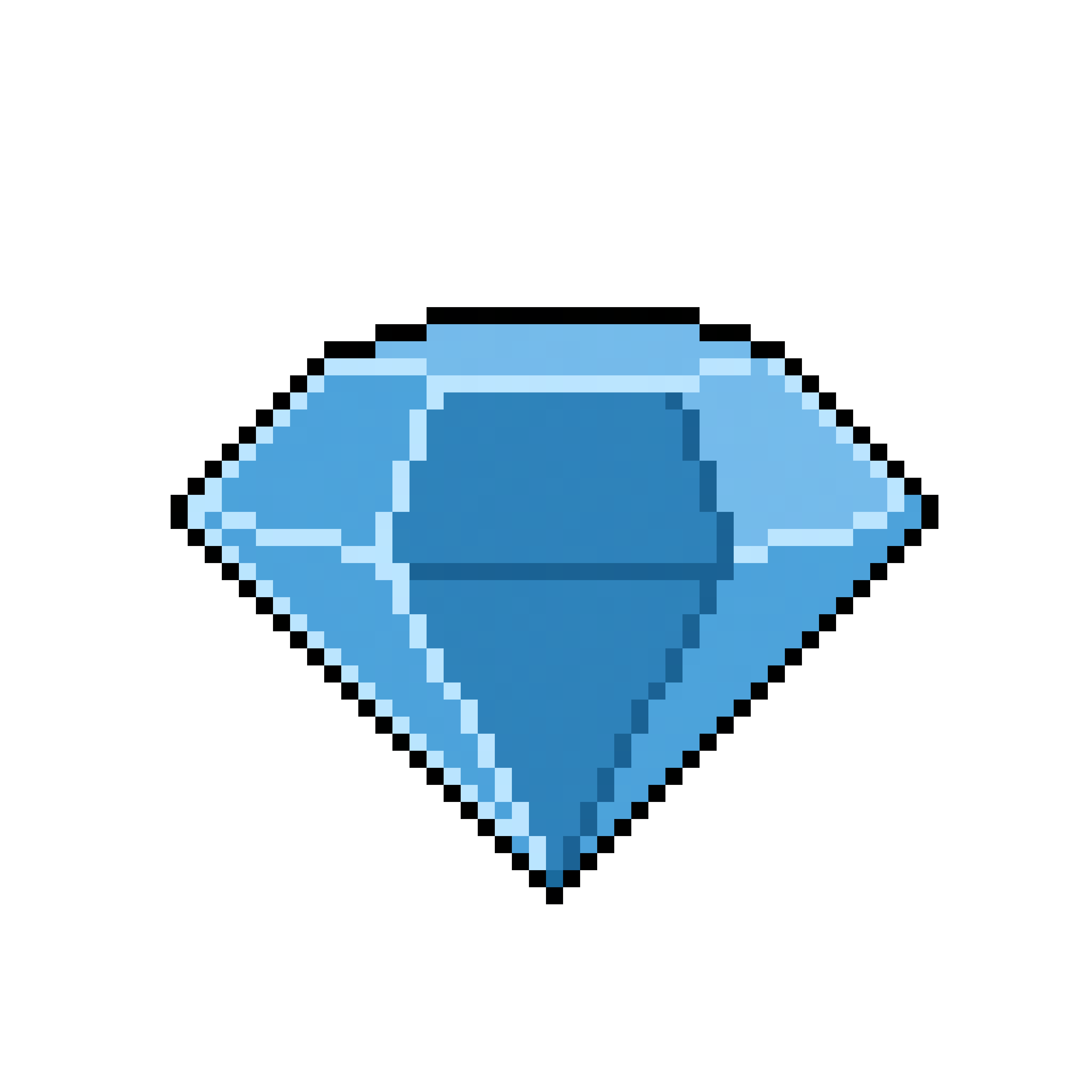 A 64×64 retro 8-bit pixel art of a sparkling diamond. Free PNG download with transparent background.