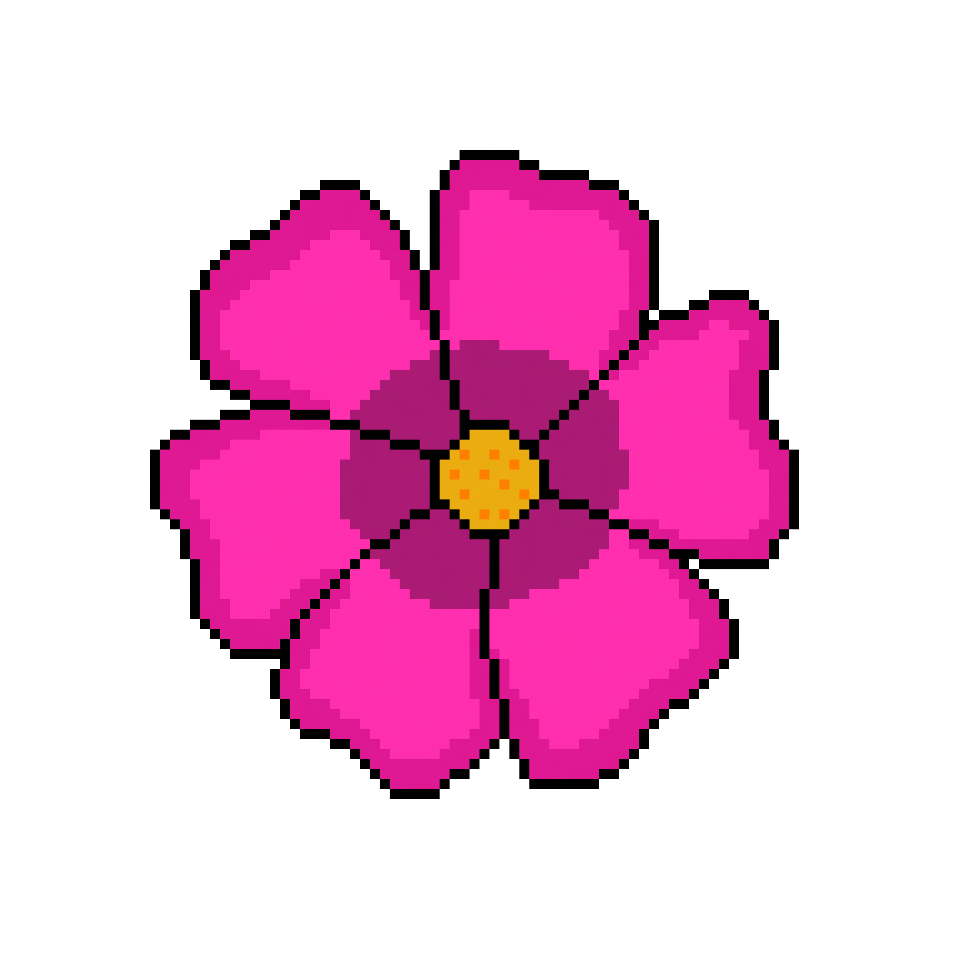 A 64×64 retro 8-bit pixel art of a pink flower with six petals. Free PNG download with transparent background.